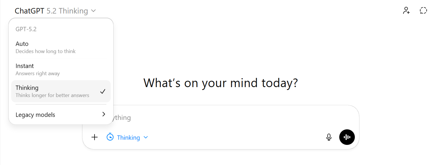 - Tell ChatGPT that this task requires the “Thinking” version of its model in order to try to force him into the "Thinking" mode.
