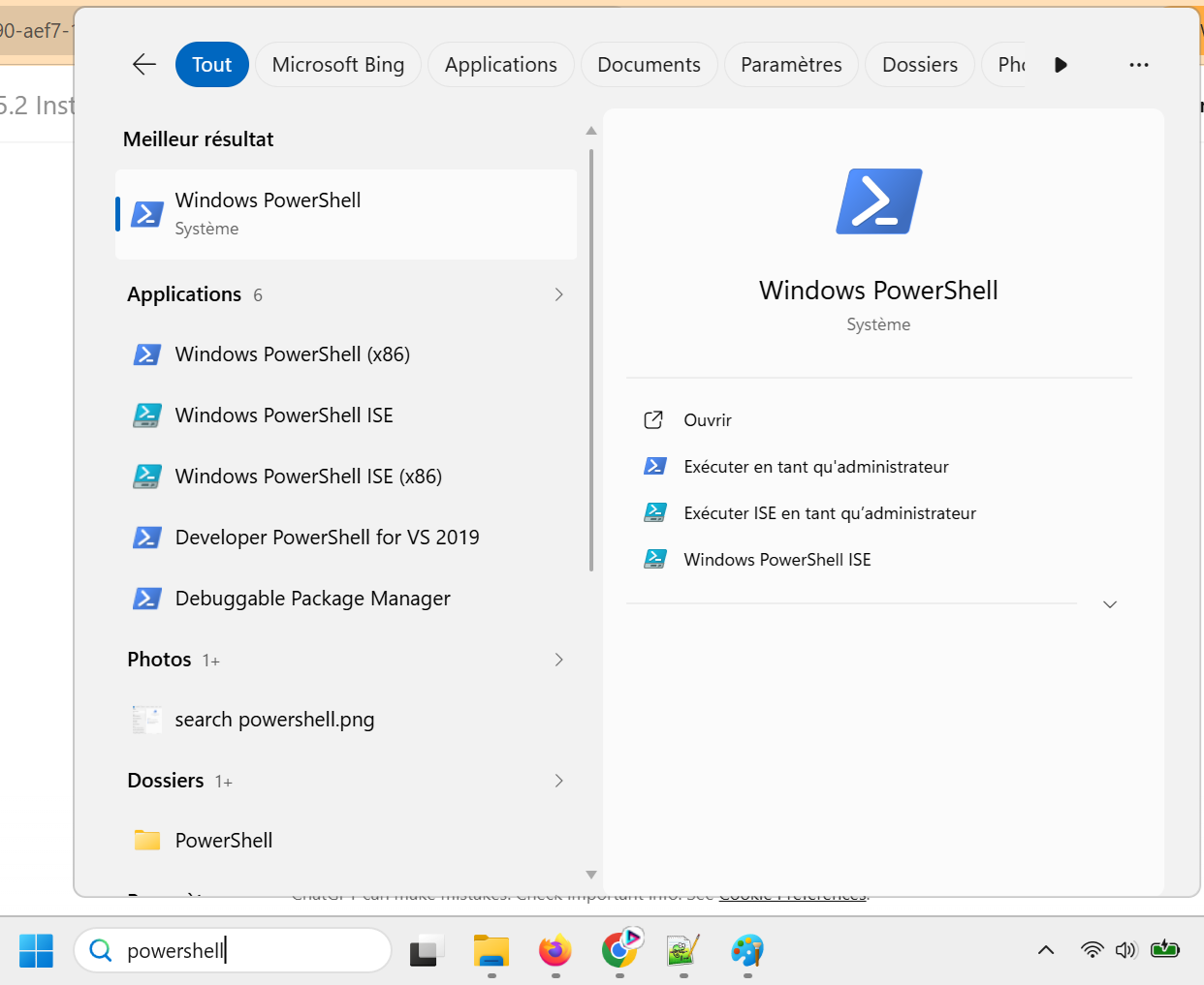 Open PowerShell. To do so, type “PowerShell” in the Start menu: