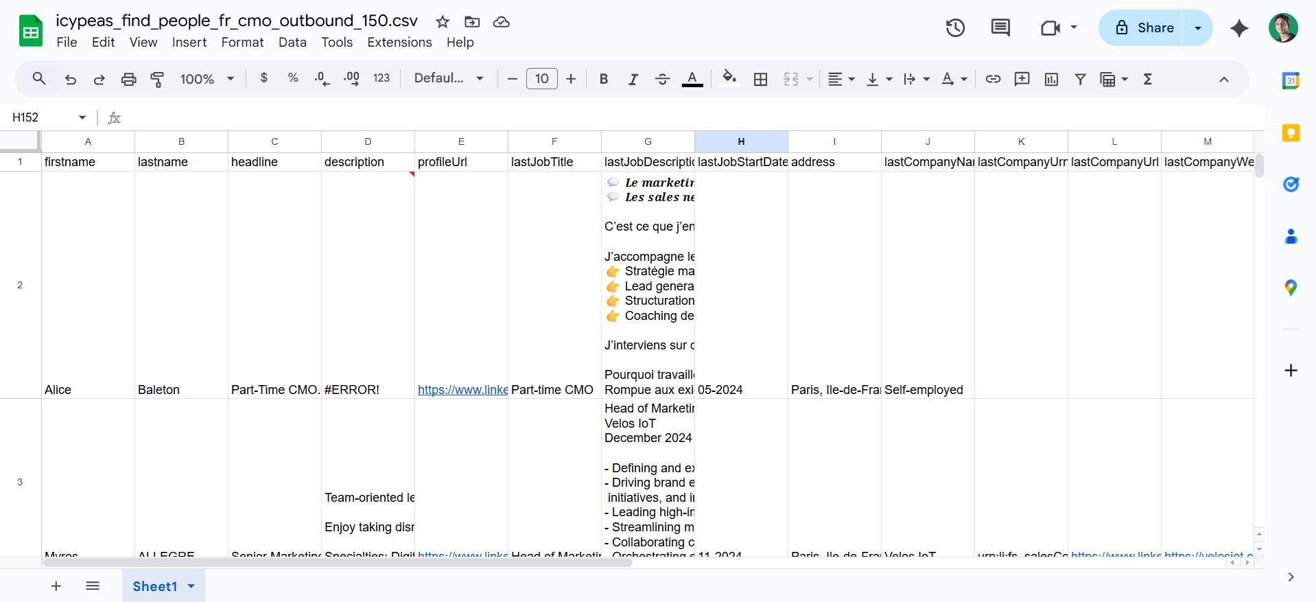 By opening the file, you’ll see that you successfully retrieved 150 leads matching your search filters: